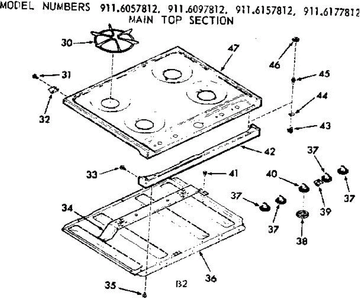 Parts for Kenmore 911.6157812 (9116157812, 911 6157812): Main Top Section Parts