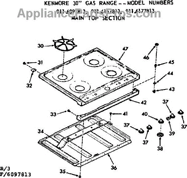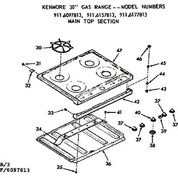 Parts for Kenmore 911.6157813 (9116157813, 911 6157813): Main Top Section Parts