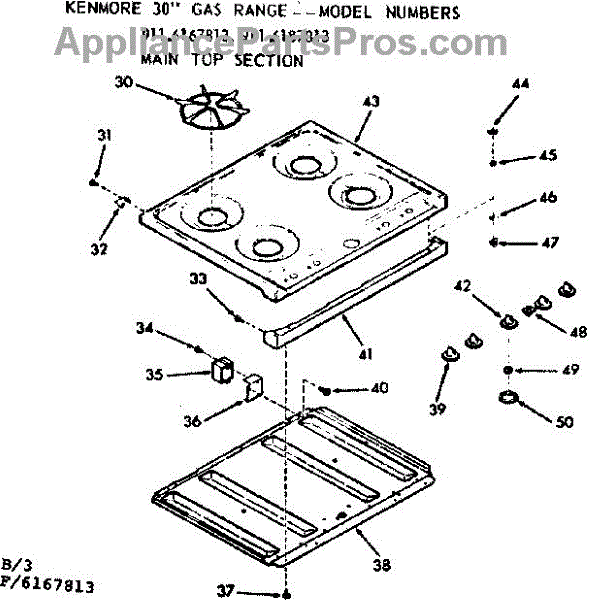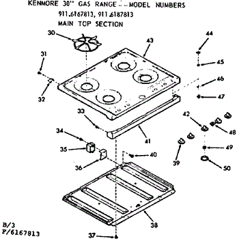Parts for Kenmore 911.6187813 (9116187813, 911 6187813): Main Top Section Parts