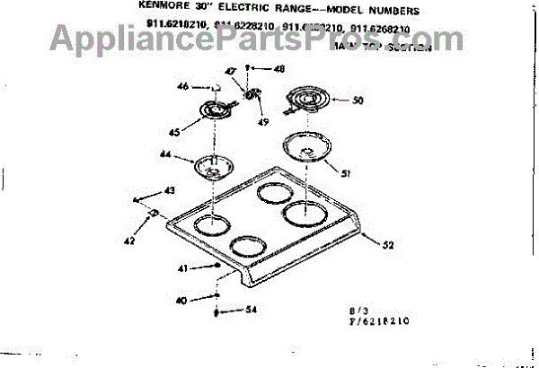 Parts for Kenmore 911.6228210 (9116228210, 911 6228210): Main Top Section Parts