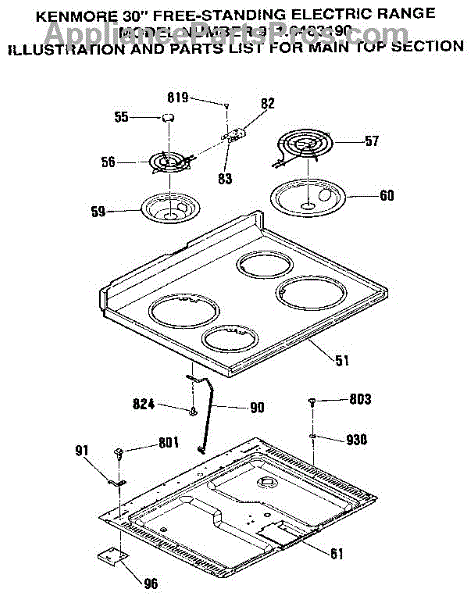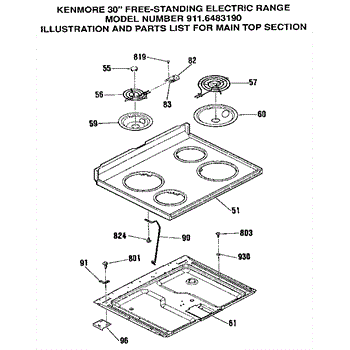 Parts for Kenmore 911.6483190 (9116483190, 911 6483190): Main Top Section Parts