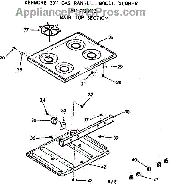 Parts for Kenmore 911.7128012 (9117128012, 911 7128012): Main Top Section Parts