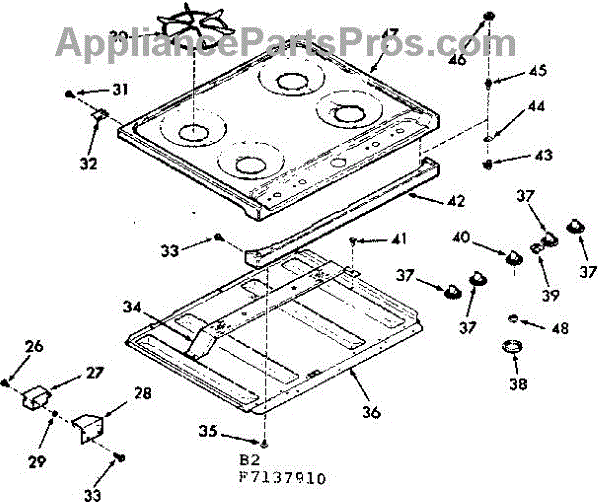 Parts for Kenmore 911.7137910 (9117137910, 911 7137910): Main Top Section Parts