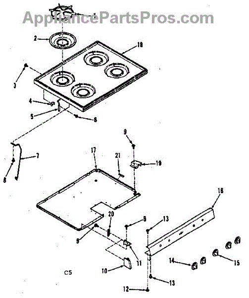 By Whirlpool. Round chrome drip pan for gas ranges and cooktops made by Whirlpool, Roper, Kitchen Aid, and Kenmore (model number prefix 106, 655). Size: 8-5/8" OD. Has three openings. Matching grate: WB31K5027.