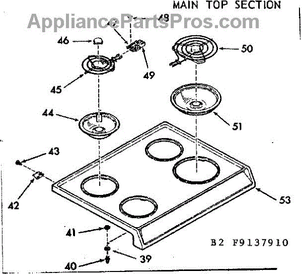Parts for Kenmore 911.9137910 (9119137910, 911 9137910): Main Top Section Parts