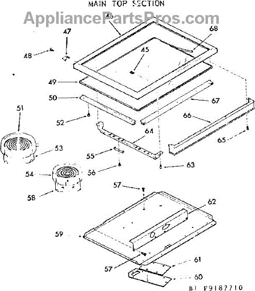 Parts for Kenmore 911.9187710 (9119187710, 911 9187710): Main Top Section Parts