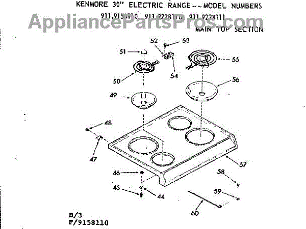 Parts for Kenmore 911.9228110 (9119228110, 911 9228110): Main Top Section Parts
