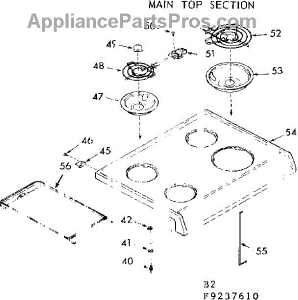Parts for Kenmore 911.9237610 (9119237610, 911 9237610): Main Top Section Parts