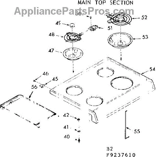 Shallow metal pan that sits below burner elements to catch grease and food spills. Replace when cracked, rusted, discolored, or warped for easier cleanup.