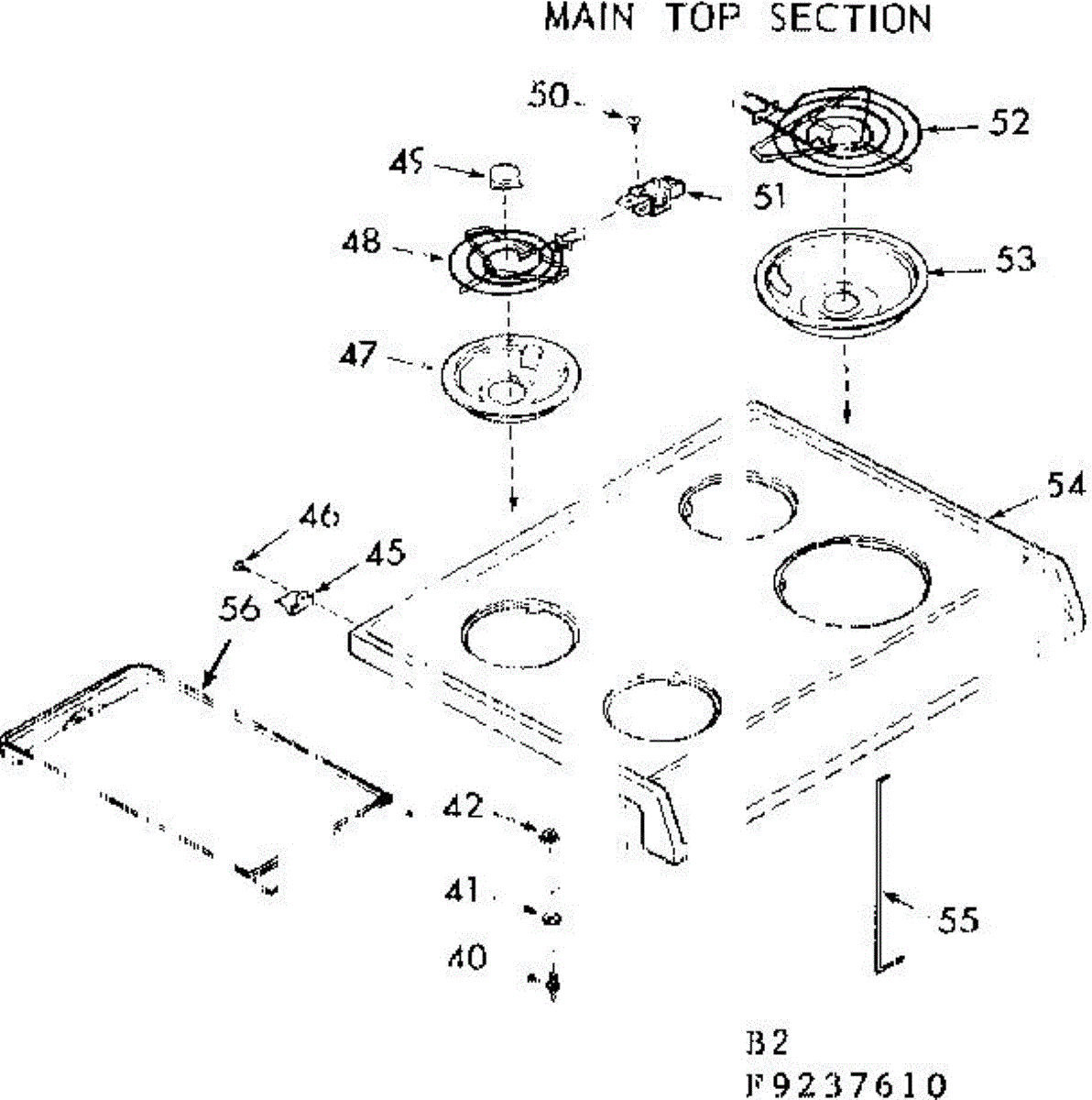 Parts for Kenmore 911.9237640 (9119237640, 911 9237640): Main Top Section Parts