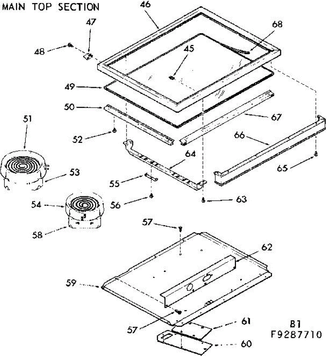 Parts for Kenmore 911.9287710 (9119287710, 911 9287710): Main Top Section Parts