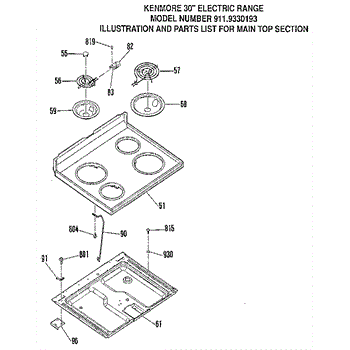 Parts for Kenmore 911.9330193 (9119330193, 911 9330193): Main Top Section Parts
