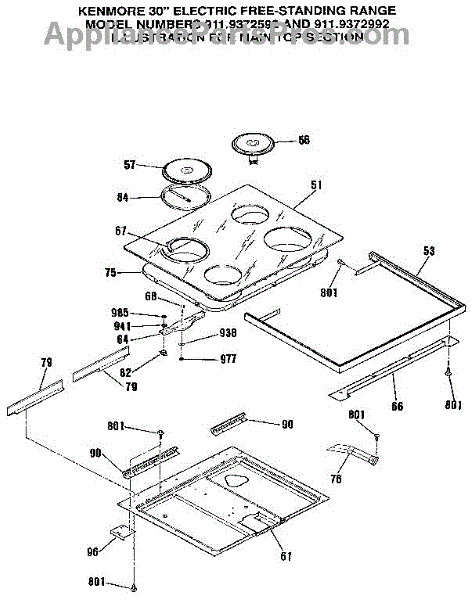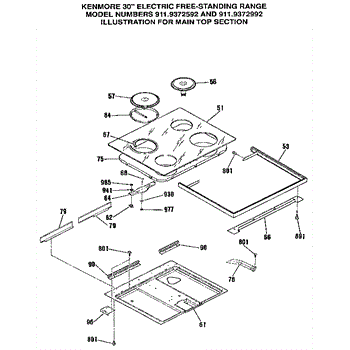 Parts for Kenmore 911.9372592 (9119372592, 911 9372592): Main Top Section Parts