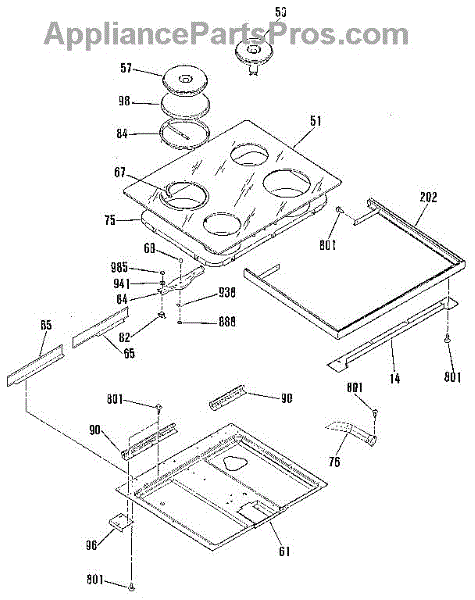 Parts for Kenmore 911.9372990 (9119372990, 911 9372990): Main Top Section Parts