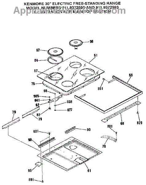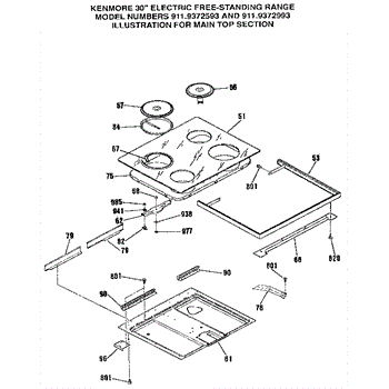Parts for Kenmore 911.9372993 (9119372993, 911 9372993): Main Top Section Parts