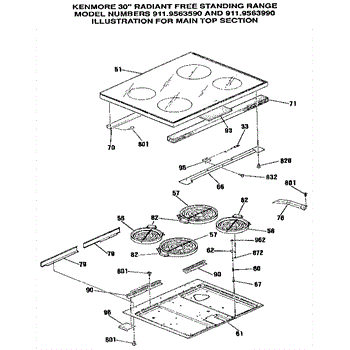 Parts for Kenmore 911.9563590 (9119563590, 911 9563590): Main Top Section Parts
