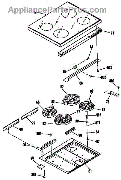 Parts for Kenmore 911.9563992 (9119563992, 911 9563992): Main Top Section Parts
