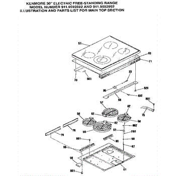 Parts for Kenmore 911.9592992 (9119592992, 911 9592992): Main Top Section Parts