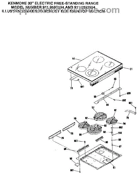 Parts for Kenmore 911.9592994 (9119592994, 911 9592994): Main Top Section Parts