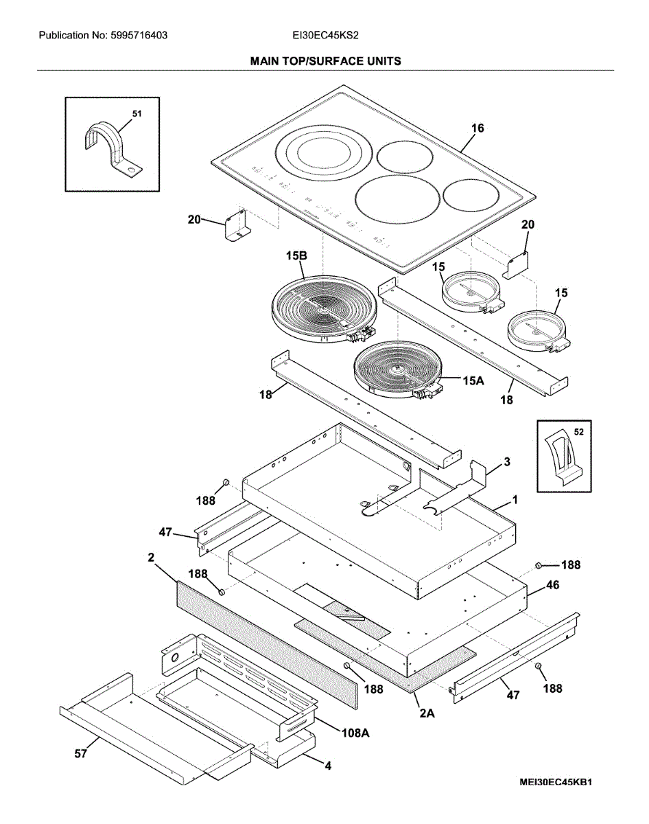 Replace your electric cooktop's main top assembly if the surface is cracked, chipped, or damaged. This component is the complete cooking surface.