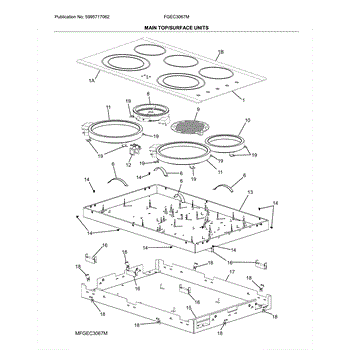 This main top assembly is the finished cooktop surface that surrounds and supports burners, grates, and drip pans—restoring a flat, secure cooking surface and clean appearance to the range. Ideal when the top is bent, cracked, or cosmetically damaged. What it does: