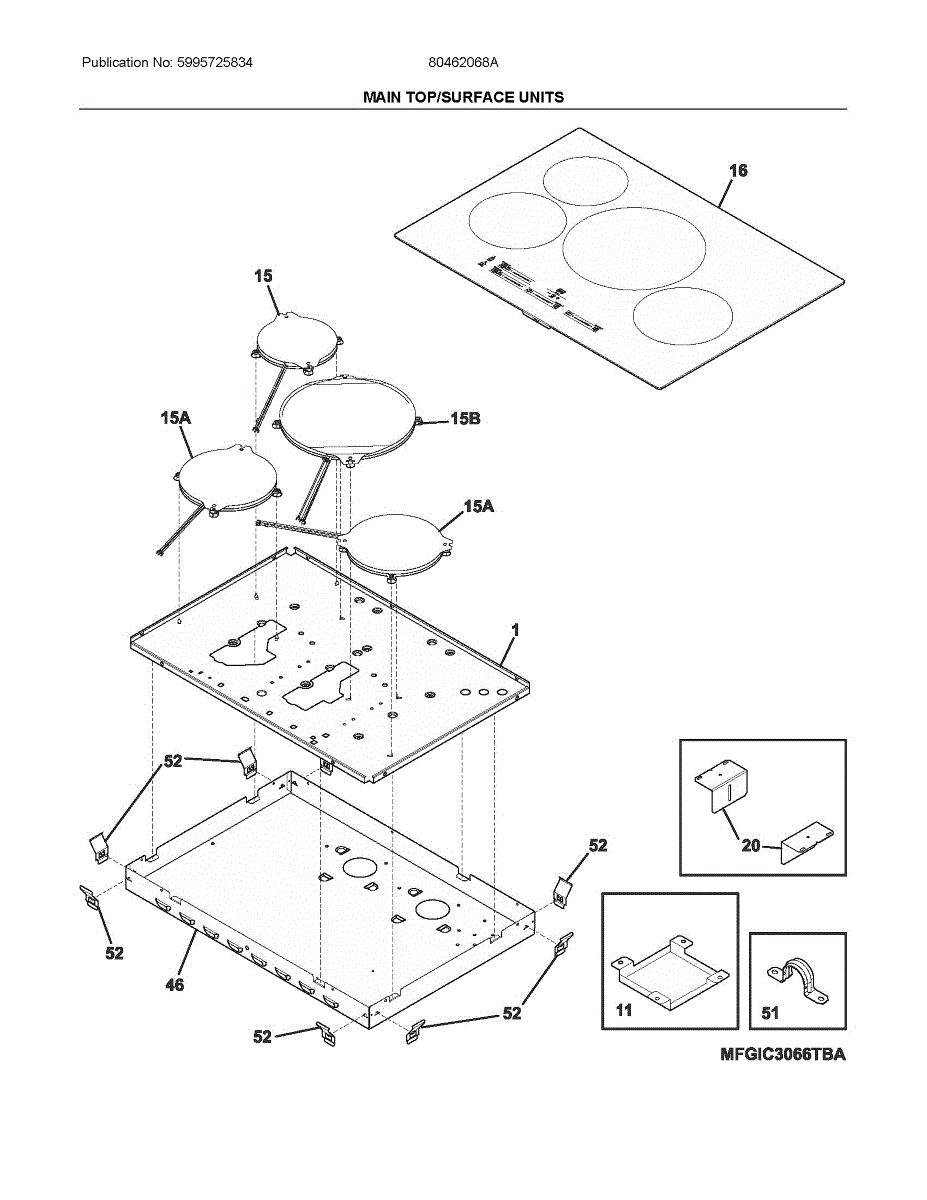 Mounting bracket for electric cooktop installation. Secures cooktop to countertop or cabinet. Replace if bent, broken, or missing for proper support.