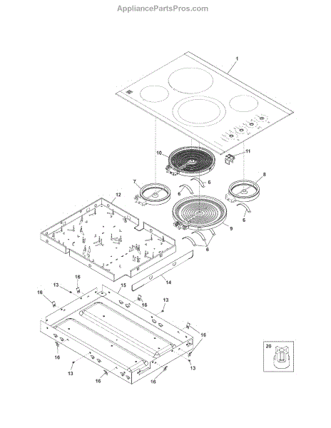 The Radiant Surface Element is an OEM part for Frigidaire ranges and cooktops. This part generates heat for cooking and boiling on the cooktop surface.