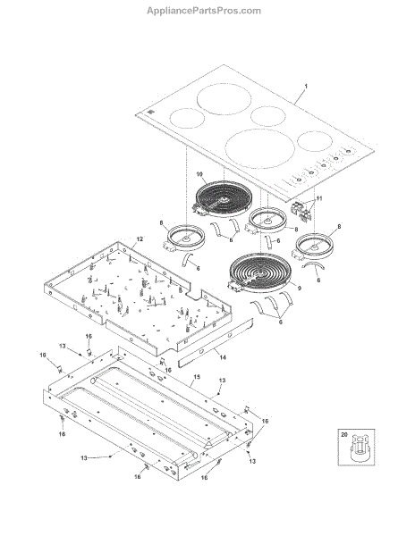Shield for electric cooktops. Protects internal components from heat and debris. Replace if cracked, broken, or missing to maintain proper coverage.