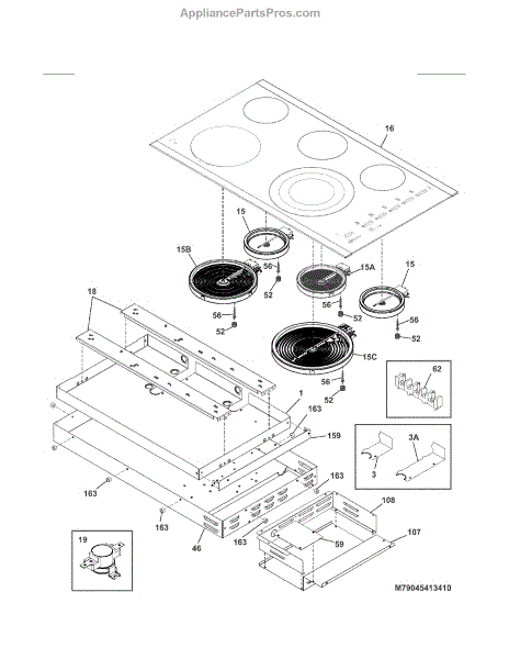 Parts for Kenmore 790.45413410 (79045413410, 790 45413410): Main Top And Surface Units Parts