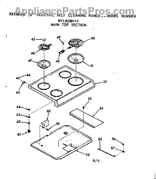 Parts for Kenmore 911.9338111 (9119338111, 911 9338111): Main Topsection Parts