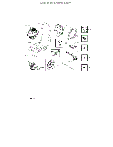 This is a wheel kit for pressure washers. It is fitted onto the base assembly of the equipment. The wheel kit is made of metal and plastic and helps make it easier to transport the pressure washer. The kit comes with both the wheel assembly and the needed E-ring for a replacement.When a wheel is used regularly, it can start to wear out. Wheels can also experience impact damage. If the wheel is damaged or has been lost, it needs to be replaced. A screwdriver and a pair of pliers will be needed to take off the old wheel assembly and attach the new one. Remove the locking clip from the old wheel to remove it. Install the new wheel and axle using the E-ring before turning on the engine and using the machine again.This wheel kit is a genuine OEM replacement component sourced directly from the manufacturer. The kit is sold individually. These kits are created for use with pressure washers made by Troy-Bilt, Craftsman, and Briggs & Stratton.