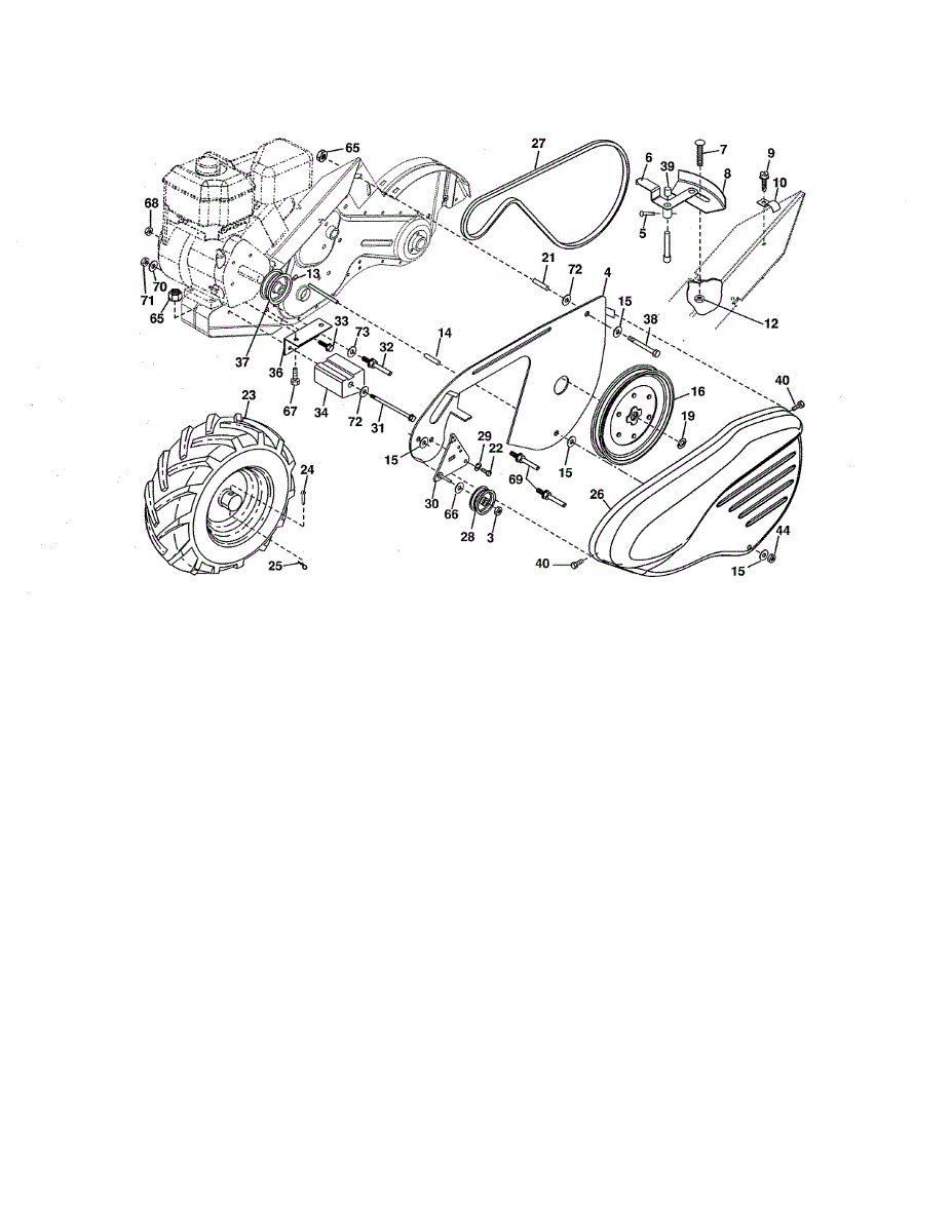 Long idler bracket assembly for rear-tine tillers. Mounts the idler pulley to maintain belt tension. Replace if bracket is bent, cracked, or broken.