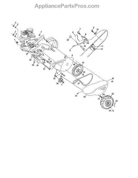 If your tiller won't move forward or wheels don't turn, this drive belt connects the motor pulley to the wheel drive mechanism. Moderate 30-minute repair.