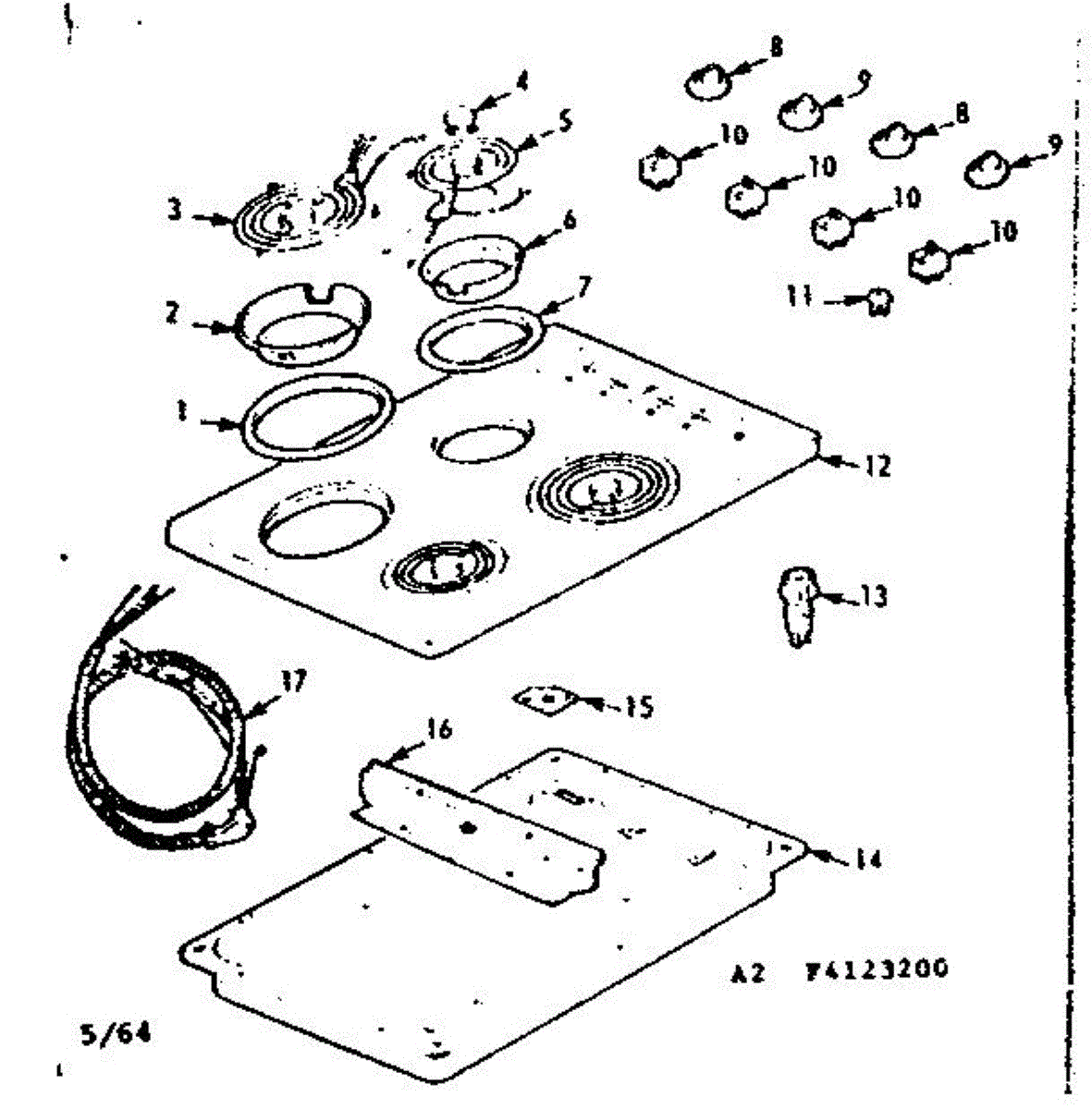 Parts for Kenmore 103.4123200 (1034123200, 103 4123200): Maintop And Element Section Parts