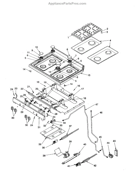 Replacement foot pad kit for range grates. Installs underneath grate legs to cushion and stabilize. Replace when worn, cracked, broken, or missing.