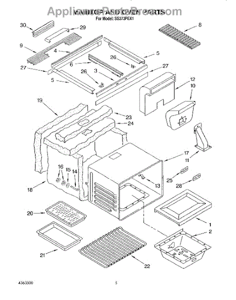 Parts for Whirlpool SS373PEX1: 03 - Maintop And Oven Parts