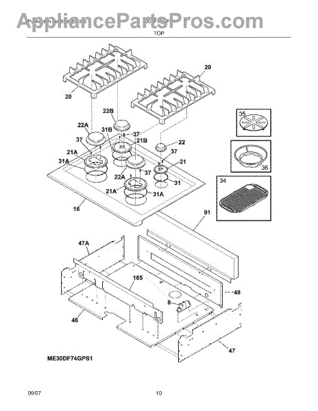 Parts for Electrolux E30DF7CGPS1: 09 - Maintop Parts
