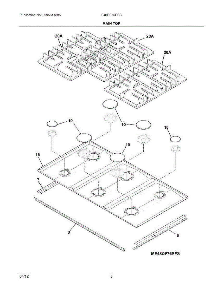 Parts for Electrolux E48DF76EPS: 09 - Main Top Parts
