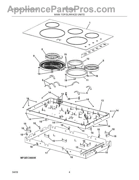 The Radiant Surface Element is an OEM part for Frigidaire ranges and cooktops. This part generates heat for cooking and boiling on the cooktop surface.