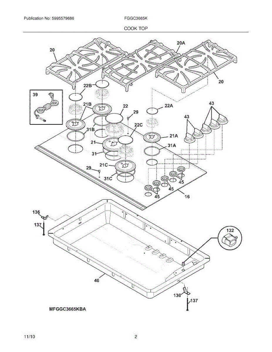 Seals the burner to the cooktop surface, preventing spills from entering the assembly and keeping flames aligned. Replace when degraded or damaged.
