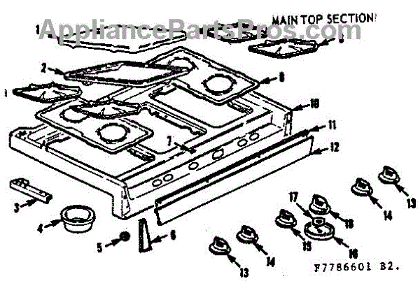 Parts for Kenmore 103.7786601 (1037786601, 103 7786601): Maintop Section Parts