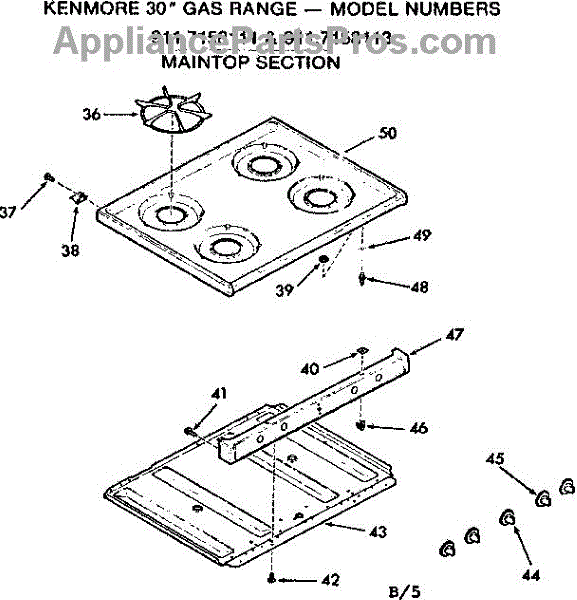 Parts for Kenmore 911.7158113 (9117158113, 911 7158113): Maintop Section Parts