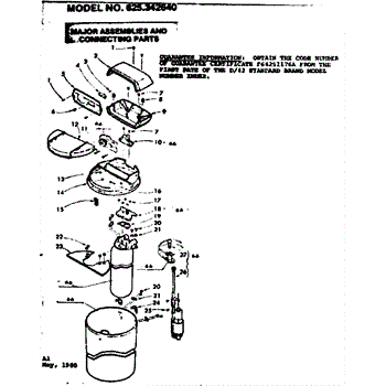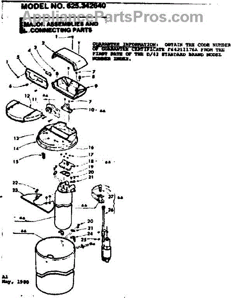 Parts for Kenmore 625.342640 (625342640, 625 342640): Major Assemblies And Connecting Parts