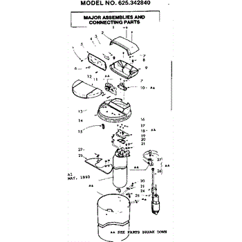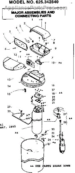 Parts for Kenmore 625.342840 (625342840, 625 342840): Major Assemblies And Connecting Parts