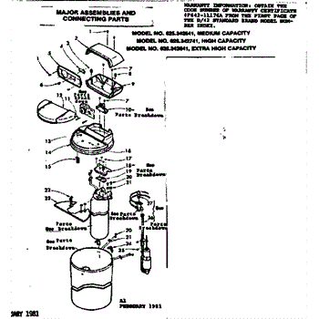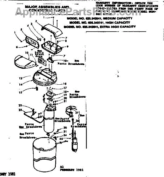 Parts for Kenmore 625.342841 (625342841, 625 342841): Major Assemblies And Connecting Parts