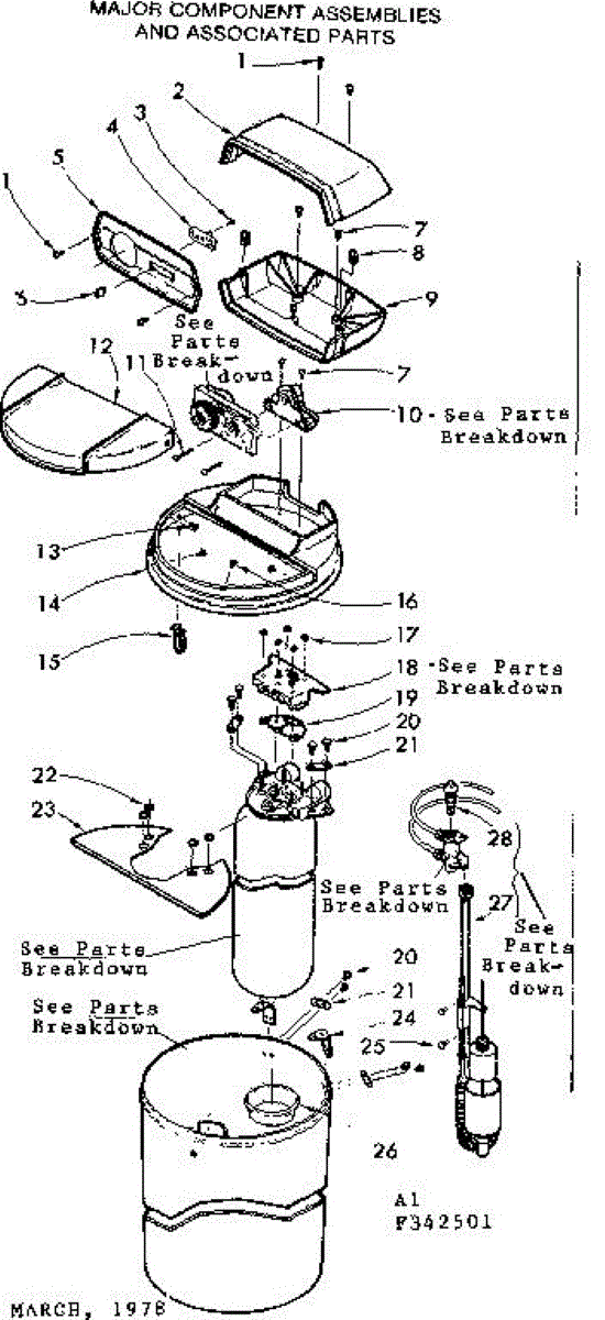 Parts for Kenmore 625.342501 (625342501, 625 342501): Major Component Assemblies And Associated Parts