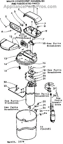 Parts for Kenmore 625.342601 (625342601, 625 342601): Major Component Assemblies And Associated Parts