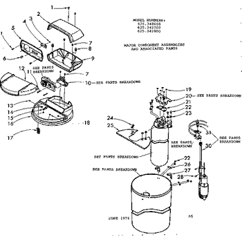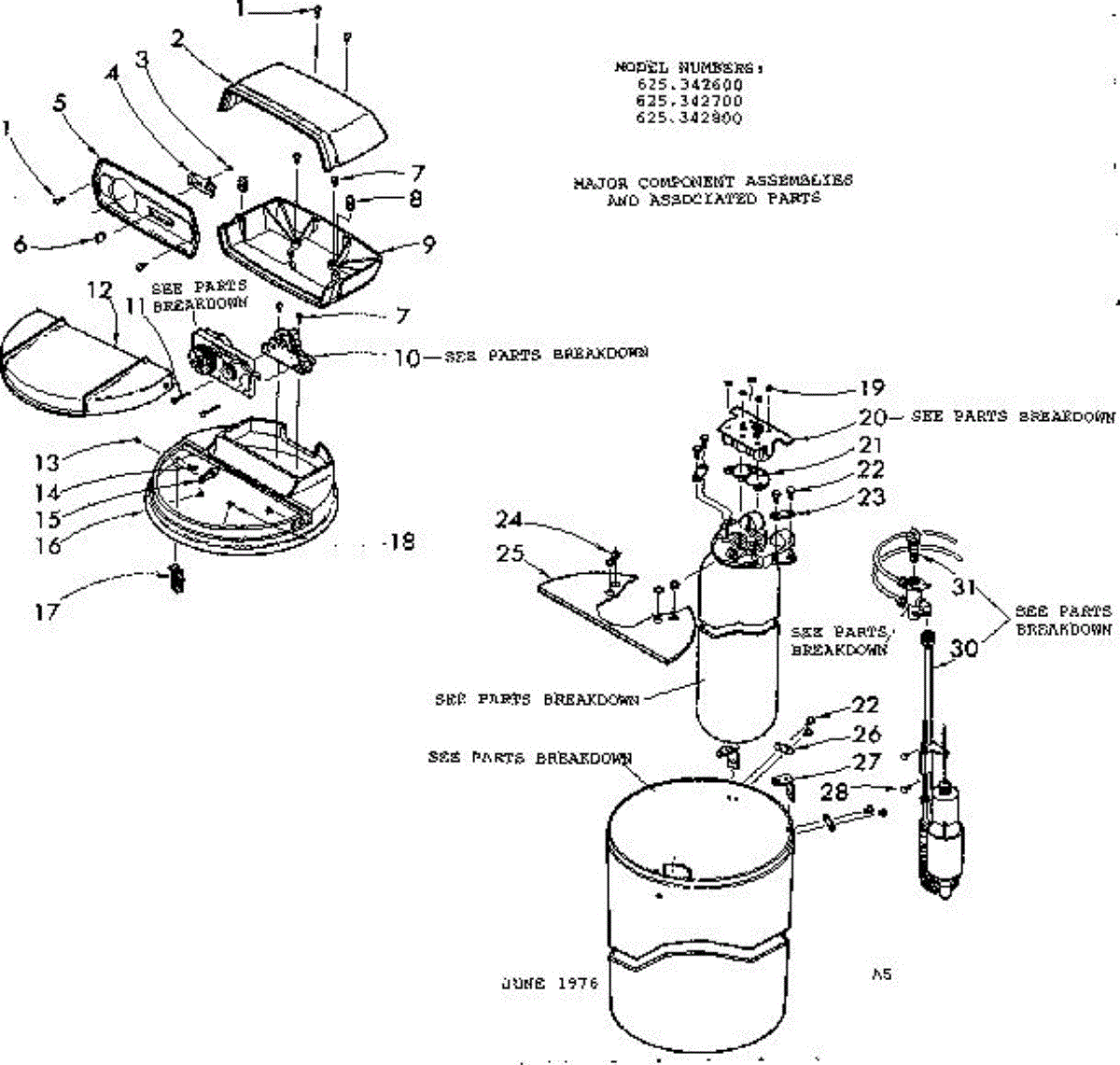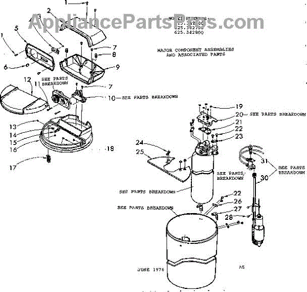 Parts for Kenmore 625.342800 (625342800, 625 342800): Major Component Assemblies & Associated Parts
