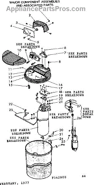 Parts for Kenmore 625.342900 (625342900, 625 342900): Major Component Assemblies And Associated Parts