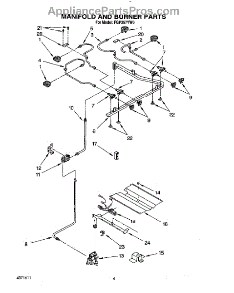 Parts for Whirlpool FGP357YL0: 04 - Manifold And Burner Parts
